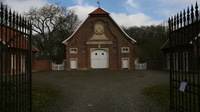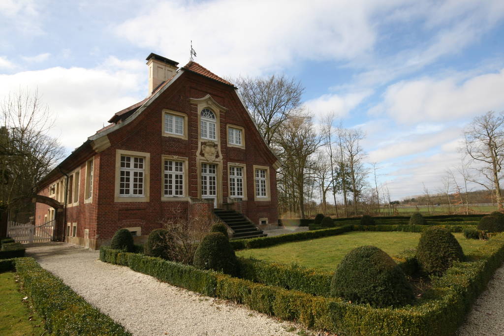 Durch ein Gehölz endlich führte der Weg, dann durch eine kurze Eichenallee, zuletzt an ein hohes hölzernes Gittertor, das den Übergang über einen schmalen Graben abschloss, welcher letztere den kleinen Edelsitz “Rüschhaus” umgab. Das Gebäude hatte etwas Eigentümliches; es hatte wenig gemein mit den anderen adeligen Häusern, wie sie gewöhnlich in unserem Lande aussehen; es war ein Bau, vollständig wie das echte altherkömmliche sächsische Bauernhaus, nur mit dem Unterschiede, dass es größer und ganz massiv von Steinen aufgeführt war, und dass es an der entgegengesetzten Seite, an seinem Ende, zu einer sehr hübschen, wenn auch kleinen, herrschaftlichen Wohnung ausgebaut war.