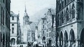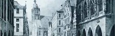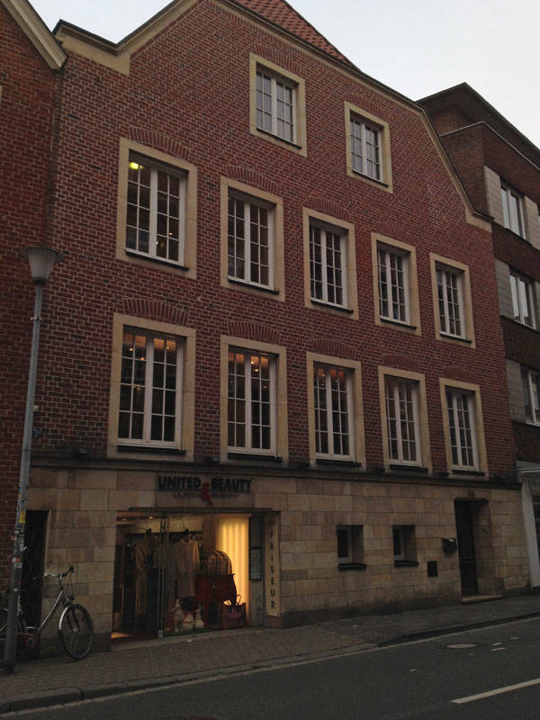 Früher einmal hatte die Familie Droste für ihre Aufenthalte in Münster ein eigenes Stadthaus am Krummen Timpen/ Ecke Bäckergasse (links). Im Zweiten Weltkrieg wird das