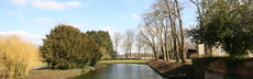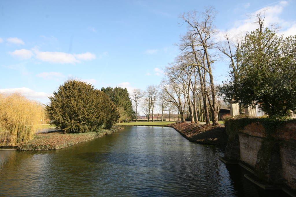Wasser und Gehölz umgebenen Garten in den Gartensalon mit seinem