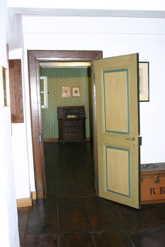 Annette bewohnt zwei Zimmer in Zwischengeschoss. Ins "Schneckenhäuschen", wie sie ihr Wohnzimmerchen bezeichnet, zieht sie sich zum Schreiben zurück, wenn nicht Pflichten in Haus, Hof und Verwandtschaft sie davon abhalten oder Krankheit sie daran hindert.