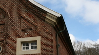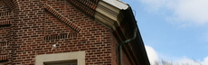 Gebäude zerstört. Rechts die heutige Ansicht.